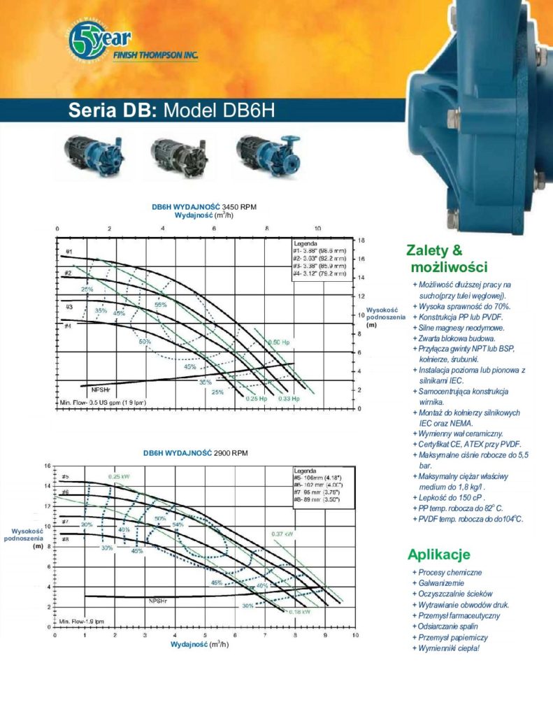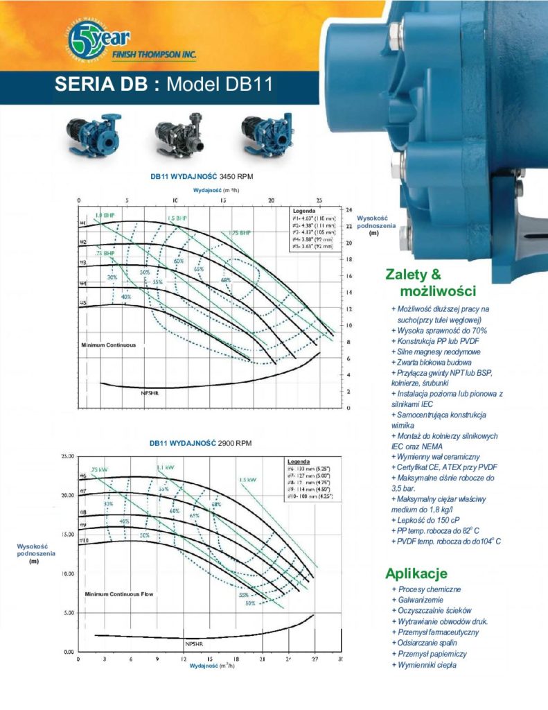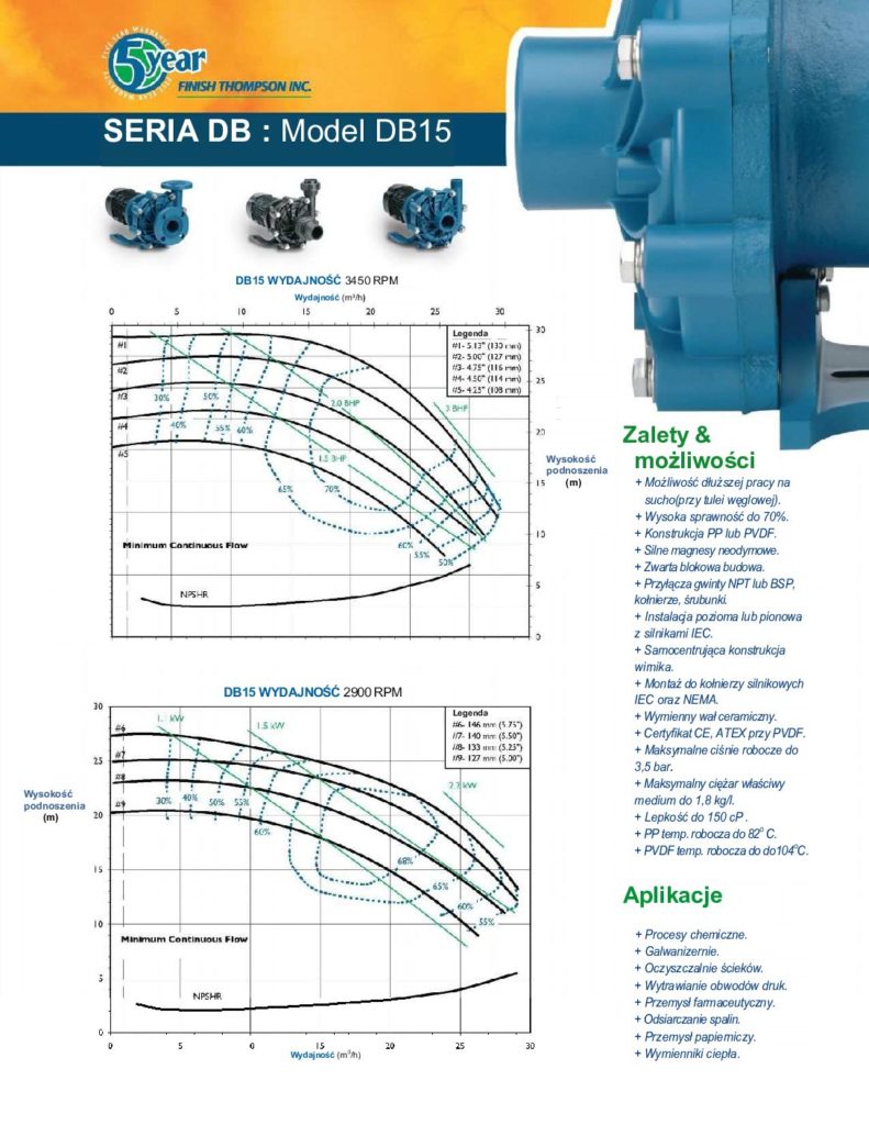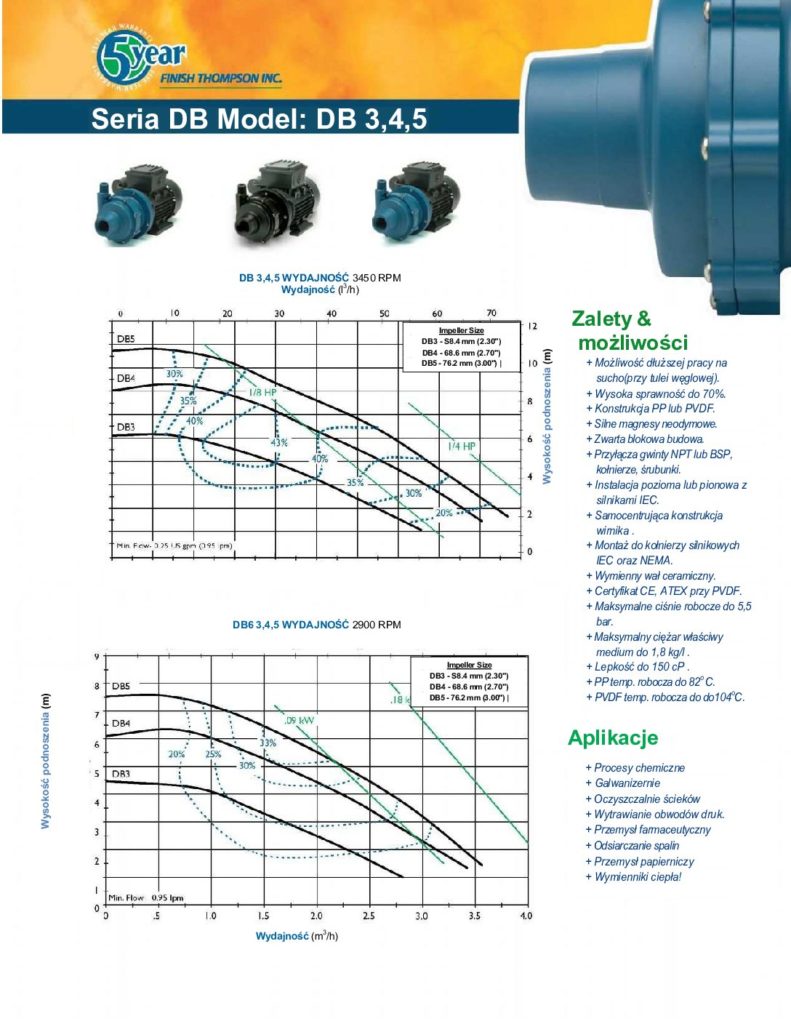 Pompy ze sprzęgłem magnetycznym Serii DB posiadają konstrukcję bezwyciekową. Korpusy pomp wykonane są z tworzyw sztucznych takich jak PP wzmacniany włóknem szklanym lub PVDF. Umożliwia to zastosowanie pomp dla większości mediów chemicznych. Pompy serii DB to osiągnięcie najnowszych technologii w zakresie pomp magnetycznych wirowych ze sprzęgłem magnetycznym. Wykorzystując bardzo silne magnesy neodymowe pompy DB są doskonałym zamiennikiem klasycznych pomp z uszczelnieniami mechanicznymi szczególnie w przypadku mediów agresywnych.